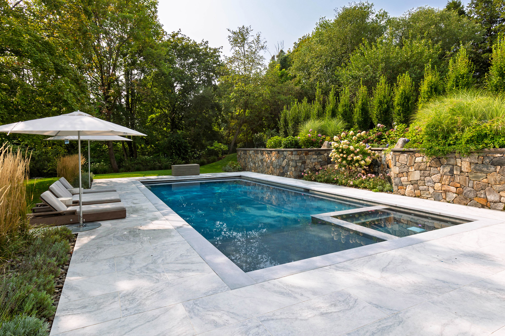 "In 2007, we hired Ambrosio to implement an extensive landscaping and hardscaping project for our new house. The project included a new front walk and steps, two stone pillars with bluestone caps and inset lighting, a 1600sf flagstone pool patio, a 500sf rear yard patio with BBQ recess, matching flagstone..."