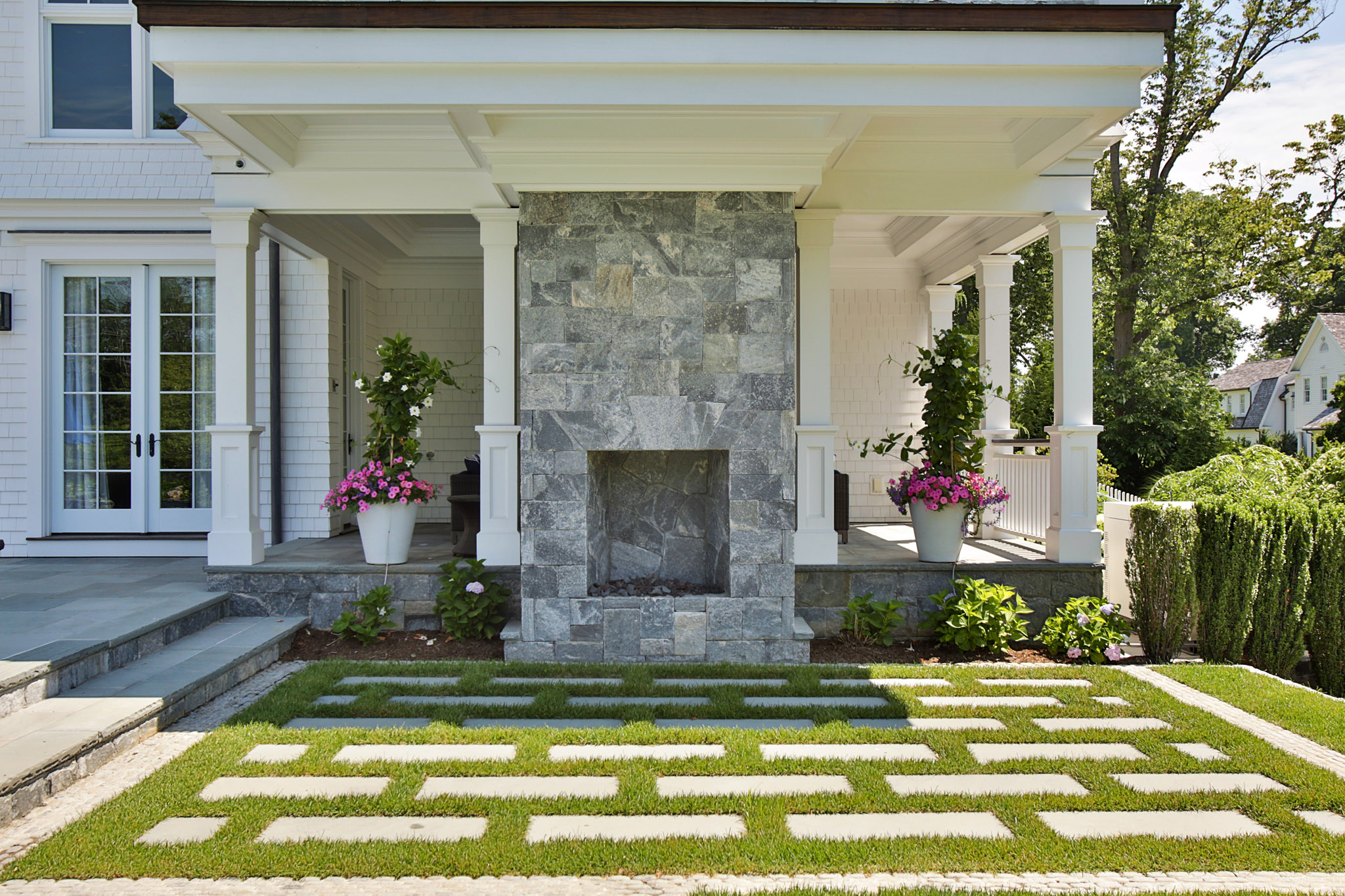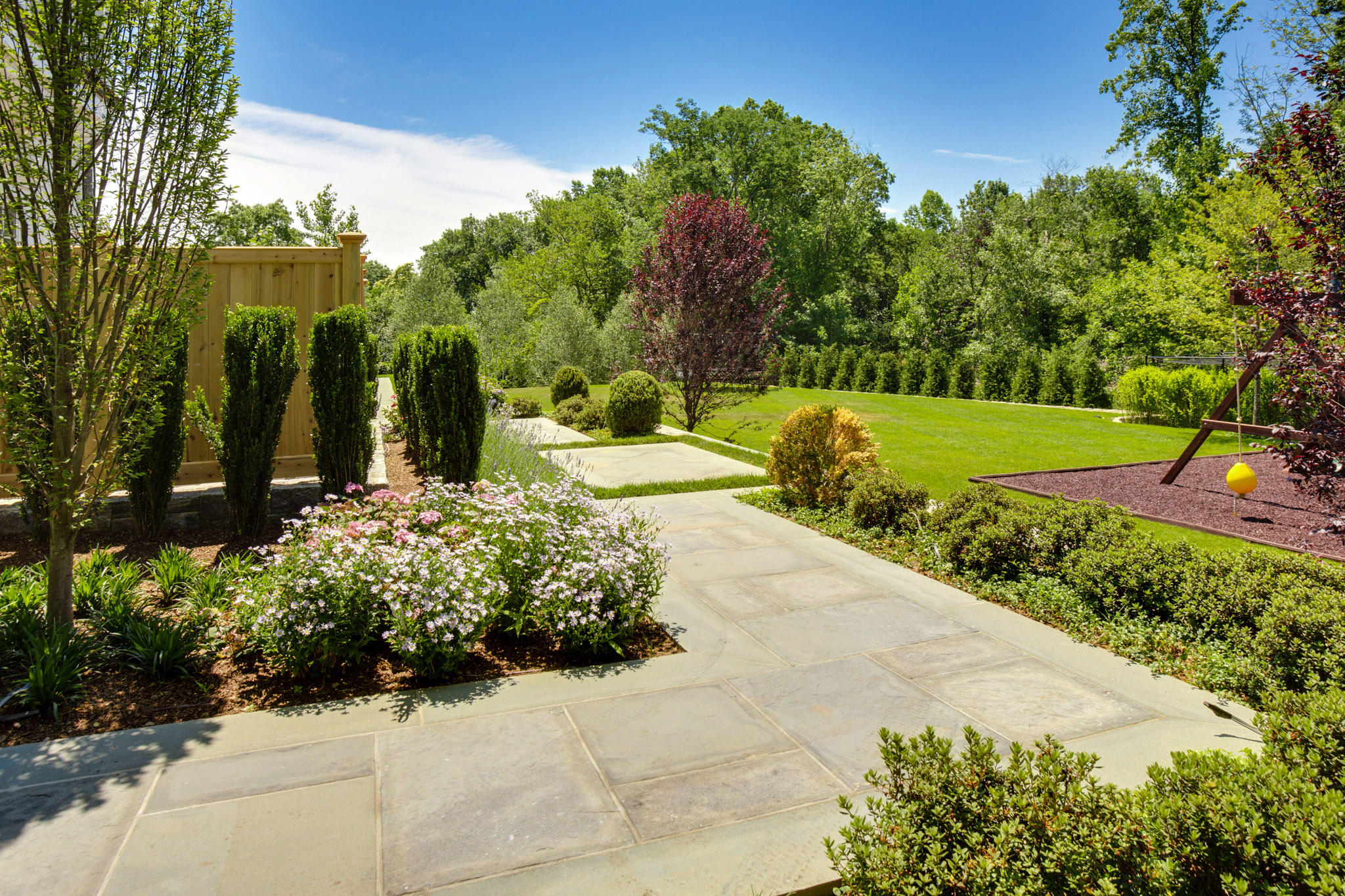 "In 2007, we hired Ambrosio to implement an extensive landscaping and hardscaping project for our new house. The project included a new front walk and steps, two stone pillars with bluestone caps and inset lighting, a 1600sf flagstone pool patio, a 500sf rear yard patio with BBQ recess, matching flagstone..."