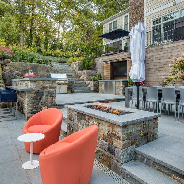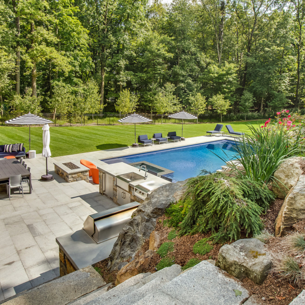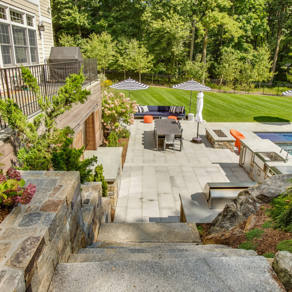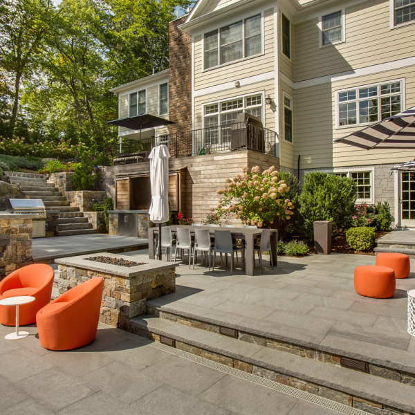 "In 2007, we hired Ambrosio to implement an extensive landscaping and hardscaping project for our new house. The project included a new front walk and steps, two stone pillars with bluestone caps and inset lighting, a 1600sf flagstone pool patio, a 500sf rear yard patio with BBQ recess, matching flagstone..."