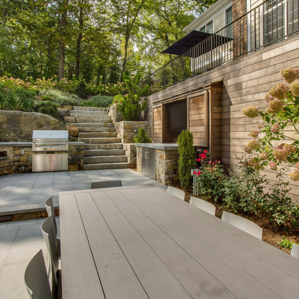 "In 2004, upon completion of an extension to our living area, we contracted Ambrosio to design and install an entirely new patio area, with new planting beds and walkways throughout the property. This project also included constructing a sitting wall around the patio, constructing both handicapped and terraced step access..."